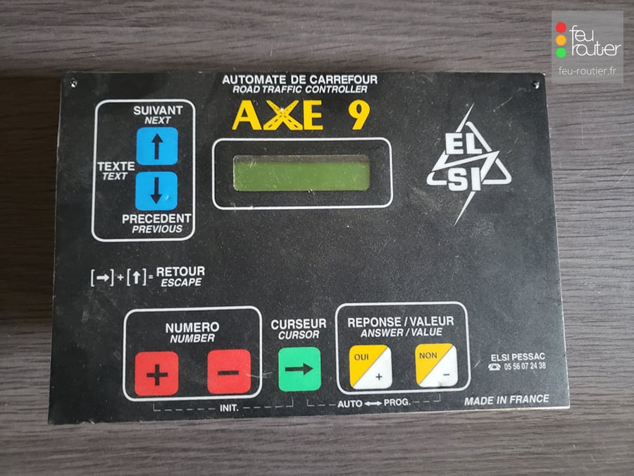 Axe 9 était un contrôleur de carrefour à microprocesseurs commercialisé par EL-SI au début des années 2000. Il permettait de gérer jusqu'à 14 feux et 16 entrées.
