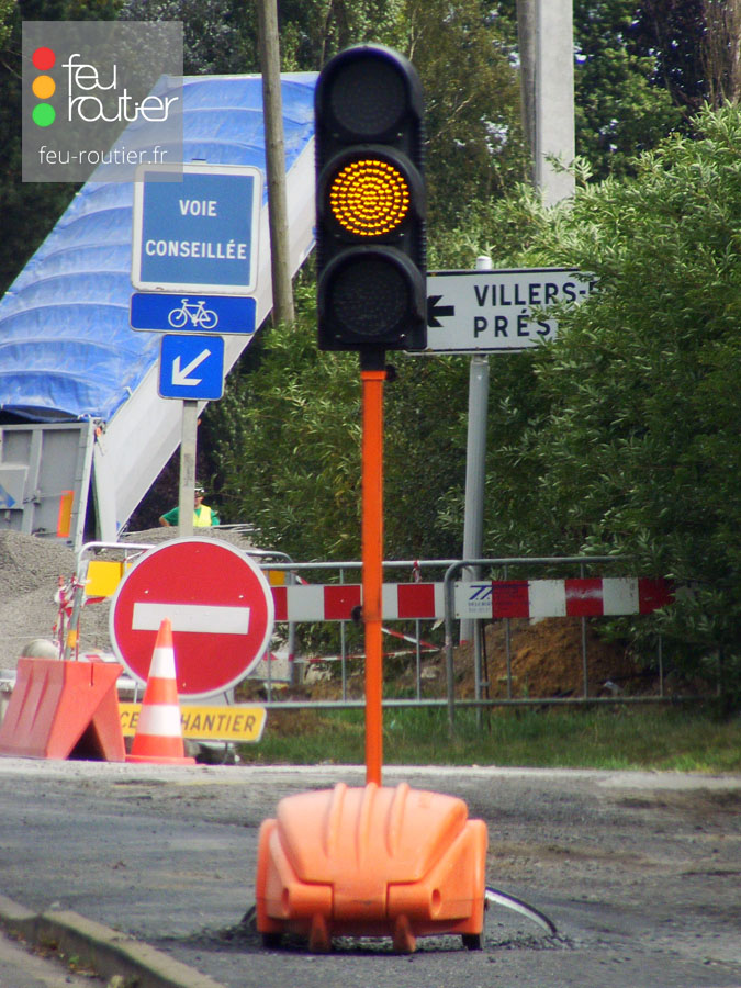 Feu de chantier lancé en 2008. Signal à LED de conception monobloc en polypropylène et structure télescopique coulissante en polypropylène orange. Synchronisation des feux par liaison infra-rouge. Alimentation sur batterie ou sur secteur 230V.