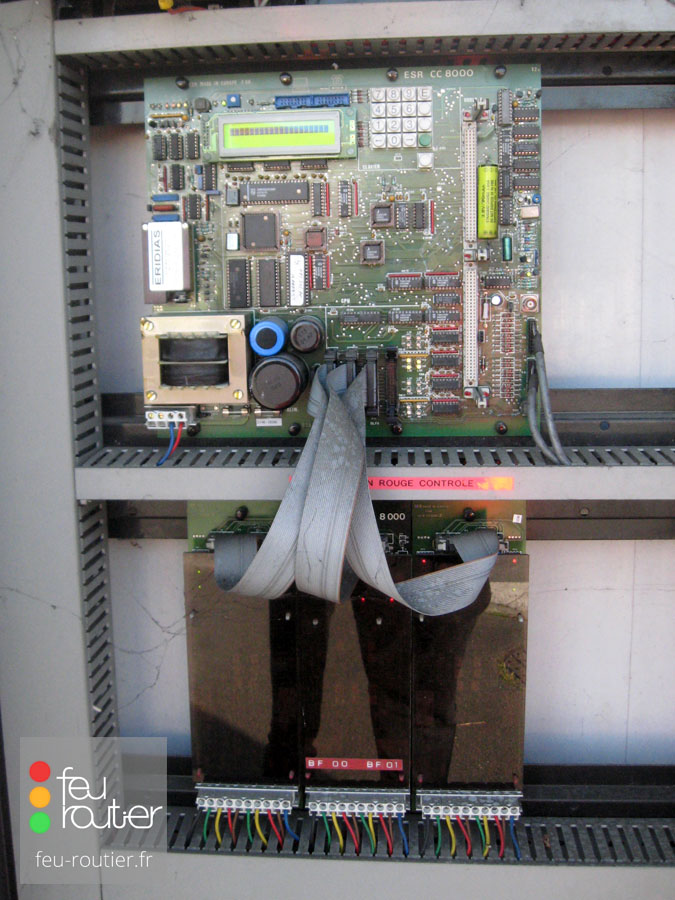 Le contrôleur de carrefour CC 8000 en configuration basique permet la gestion de 8 phases (voitures ou piétons). Il a été mis en commercialisation à partir du milieu des années 1990.
