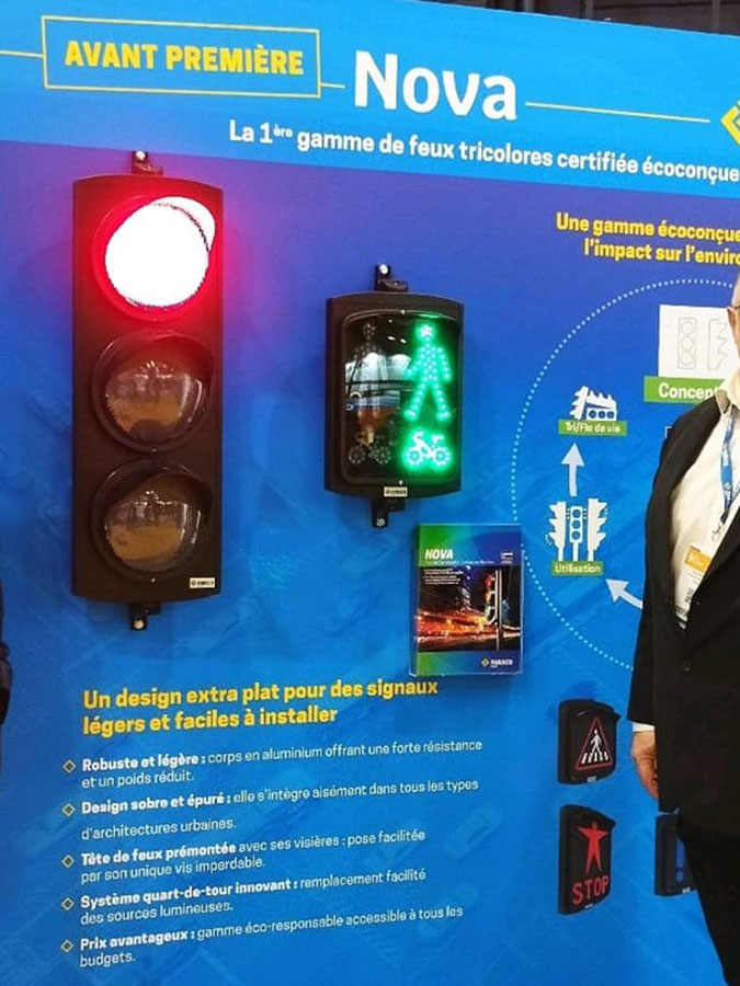 Nouvelle gamme de feux lancée par Fareco à l'occasion du Salon des maires en novembre 2022. Ils sont conçus en aluminium et en polycarbonate.
