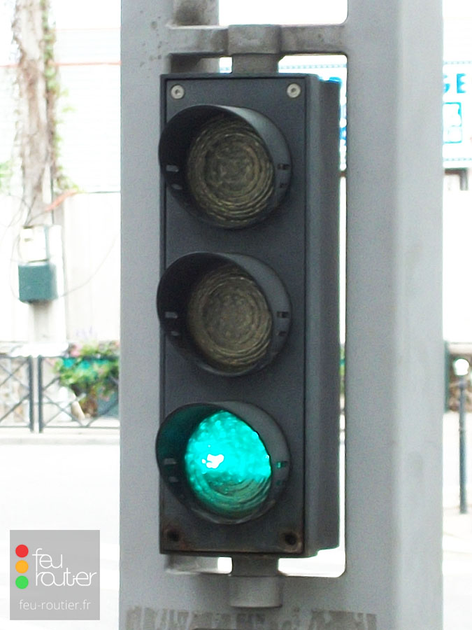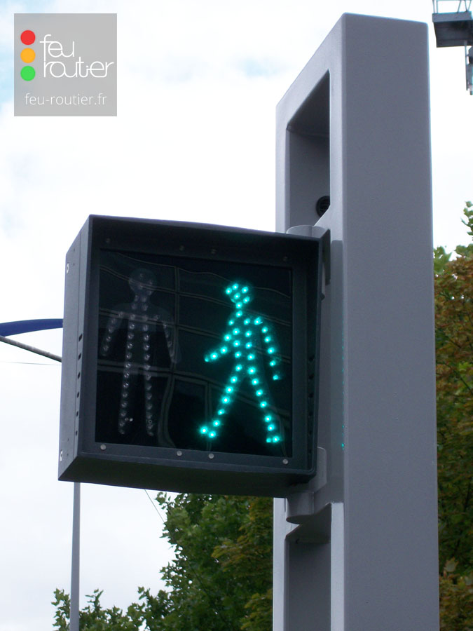 Sur le projet initial, le signal piétons était équipé d'un module affichant l'heure et la température. Seuls quelques exemplaires ont été installés en région parisienne. Ce feu a cessé d'être produit en 2011.
