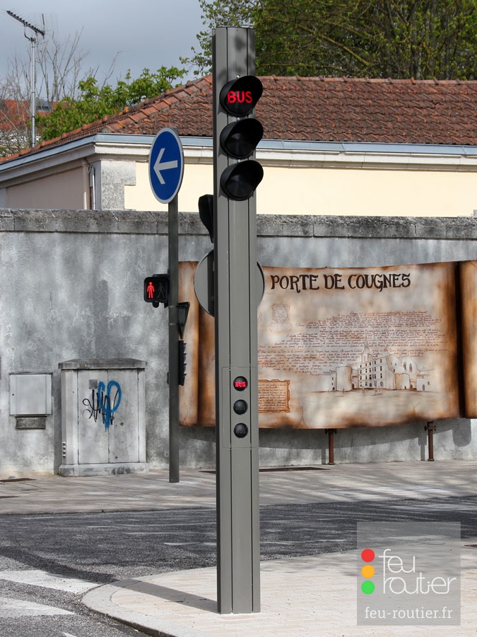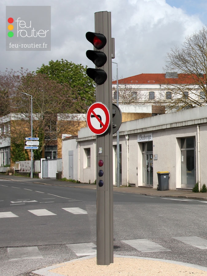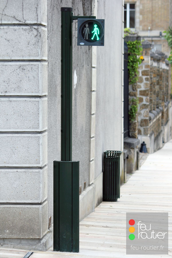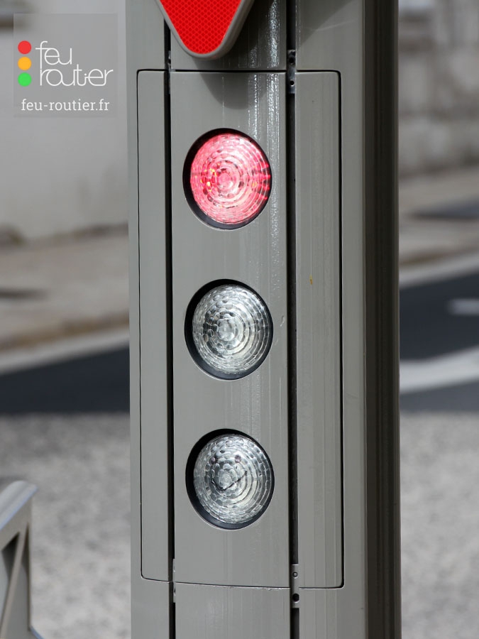 Le profilé est en aluminium anodisé de forme ovale. Conformément à la réglementation en vigueur, les mâts de couleur claire sont systématiquement de couleur sombre à hauteur du signal tricolore.