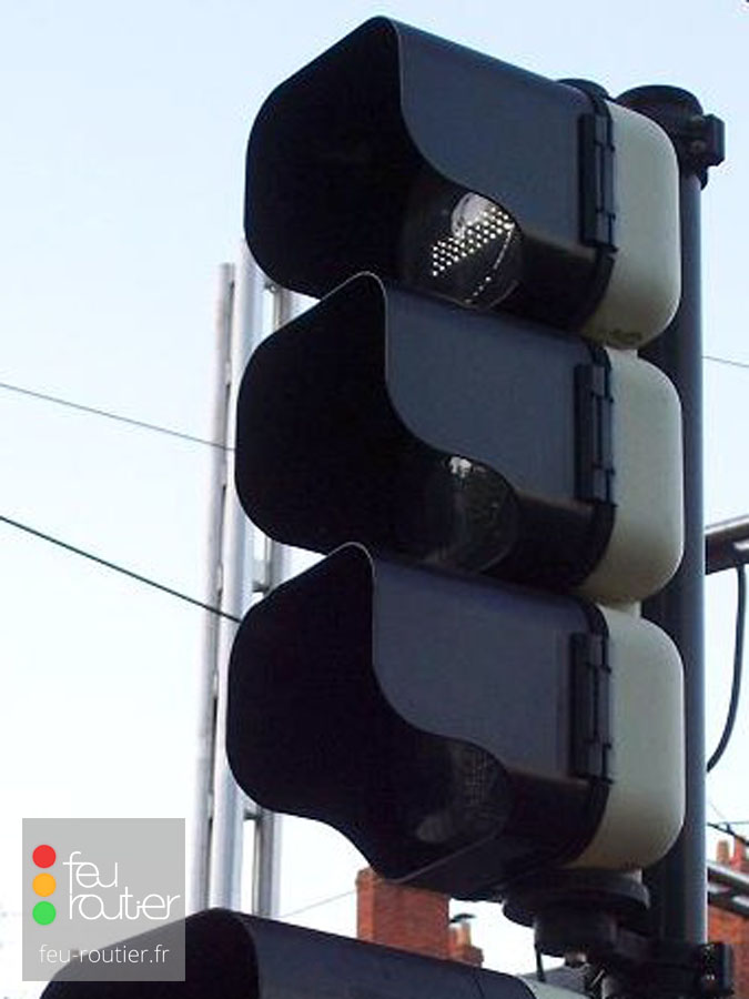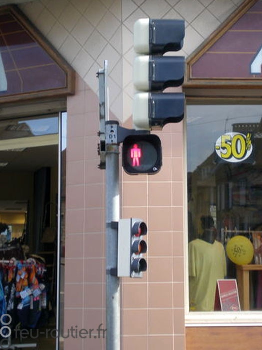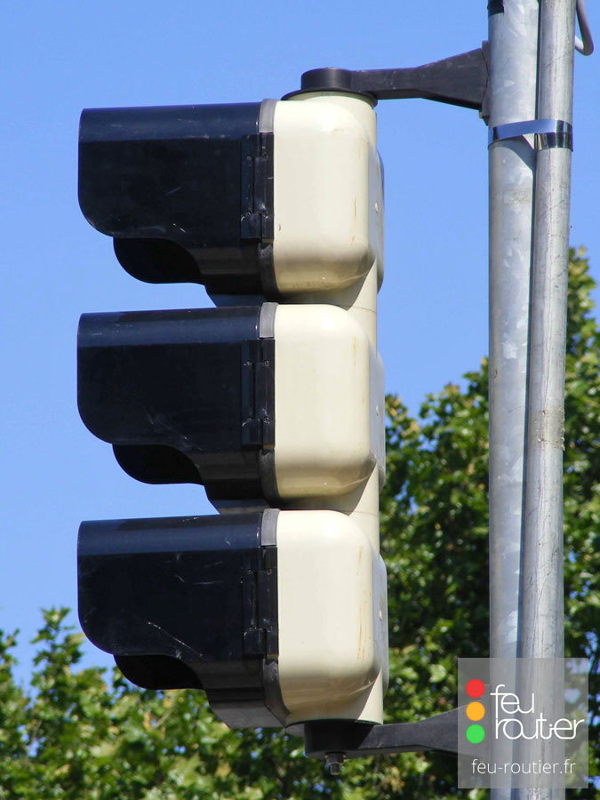 Les pictogrammes piétons et flèches, ainsi que les fixations des caissons ont évolué plusieurs fois au cours du temps. Les caissons étaient de couleur chamoix havane, ou noirs pour les derniers produits dans les années 2000.