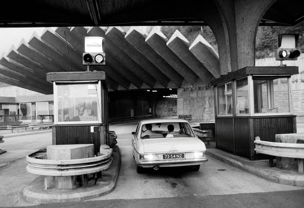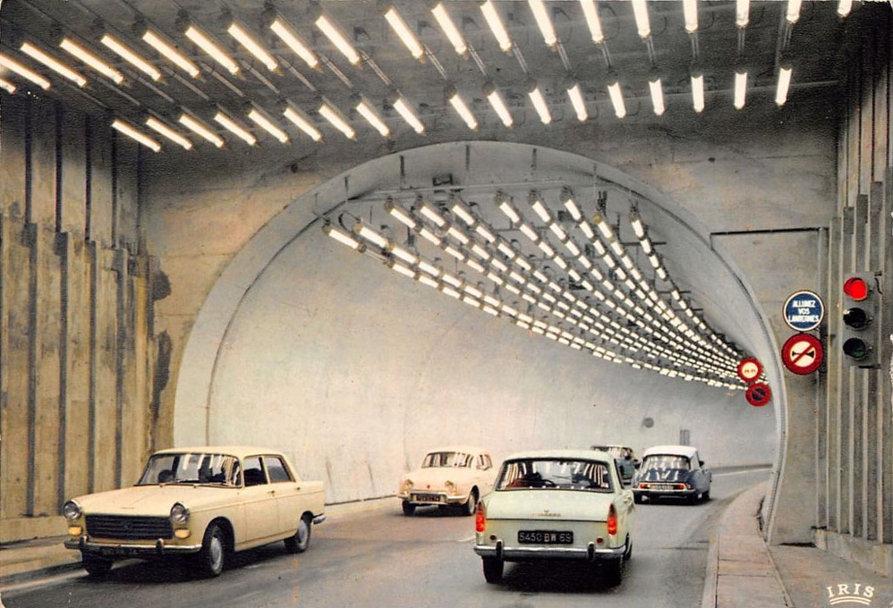 À son ouverture en 1965, les feux de signalisation étaient peu nombreux dans le tunnel. Seules quelques bornes lumineuses Strasbourg du fabricant Garbarini étaient installées devant les cabines de péage. Face à l'augmentation du trafic routier, des couloirs d'attente ont été créés à la fin des années 1960. Chacun d'entre eux ont été équipés de feux bicolores SEA Deloge.