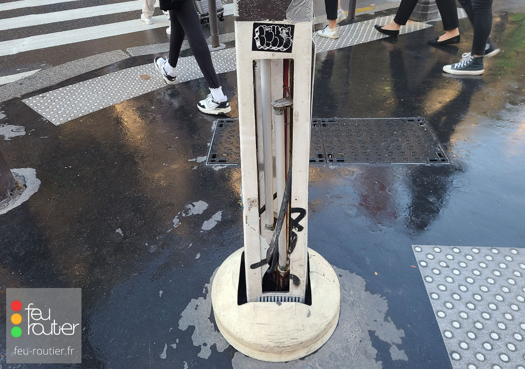 Ces nouveaux mâts à base lumineuse, conçus spécialement pour la ville de Paris, sont utilisés pour renforcer la visibilité des signaux implantés au milieu de la chaussée, particulièrement sur les larges boulevards parisiens. Ce modèle surnommé "potelet carré", ou "potelet Mazas" est toujours utilisé aujourd'hui à Paris et fabriqué par la société de tôlerie Bowden SAS.