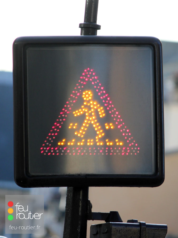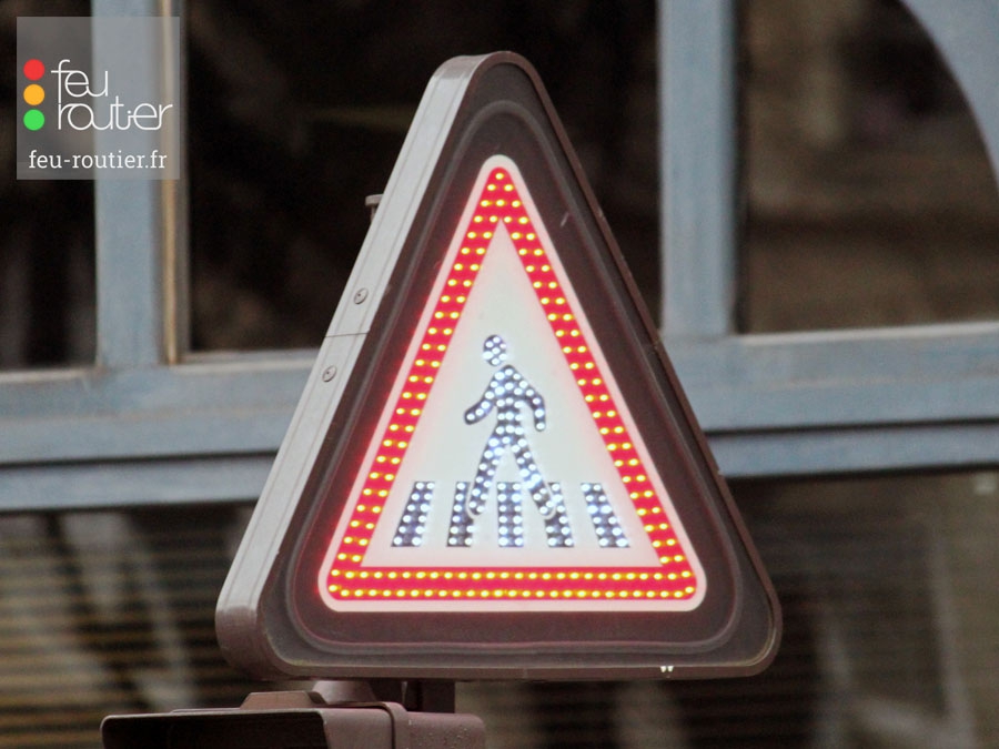 La notion de priorité piétons, qui est reprise sur des panneaux et feux lumineux clignotants à certains carrefours depuis les années 1980, n'ayant pas de réelle utilité puisque les piétons sont de toute façon toujours prioritaires une fois engagés sur un passage protégé selon le code de la route, ces signaux vont progressivement être remplacés par un simple signal lumineux représentant le panneau d'annonce d'un passage piétons (A13b). Ce message est également mieux compris par les usagers étrangers.