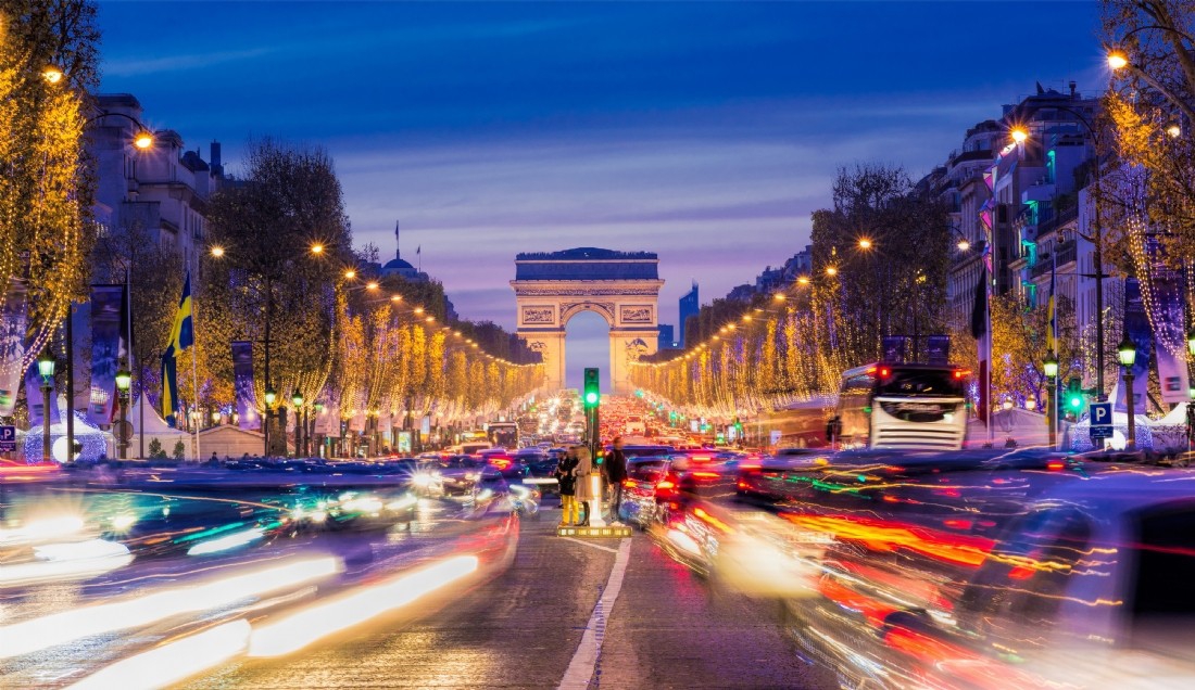 Depuis l'après-guerre, les Champs-Elysées sont équipés de refuges piétons entourés de bornes lumineuses en milieu de chaussée, permettant aux piétons de marquer une pause dans la traversée de cette très large avenue. Ces refuges ont évolué plusieurs fois au cours de l'histoire, et ça a été de nouveau le cas en 2011.