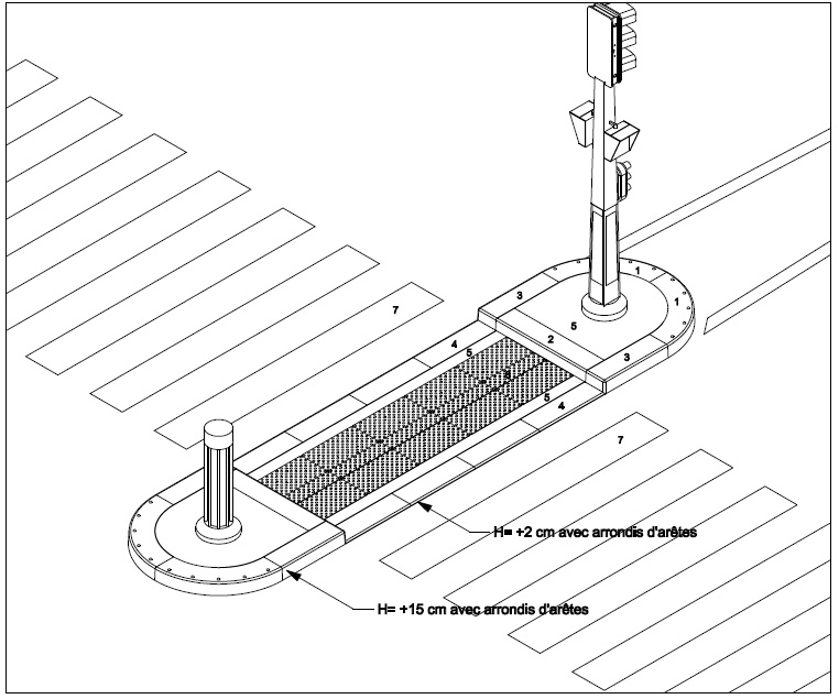En 2004, nouveau problème : la réglementation relative à la mise en accessibilité des passages piétons pour les personnes malvoyantes impose un dénivelé de 2 cm pour permettre le repérage du refuge par des bandes podotactiles. Ce dénivelé est bien entendu non-compatible avec les socles Devaux.