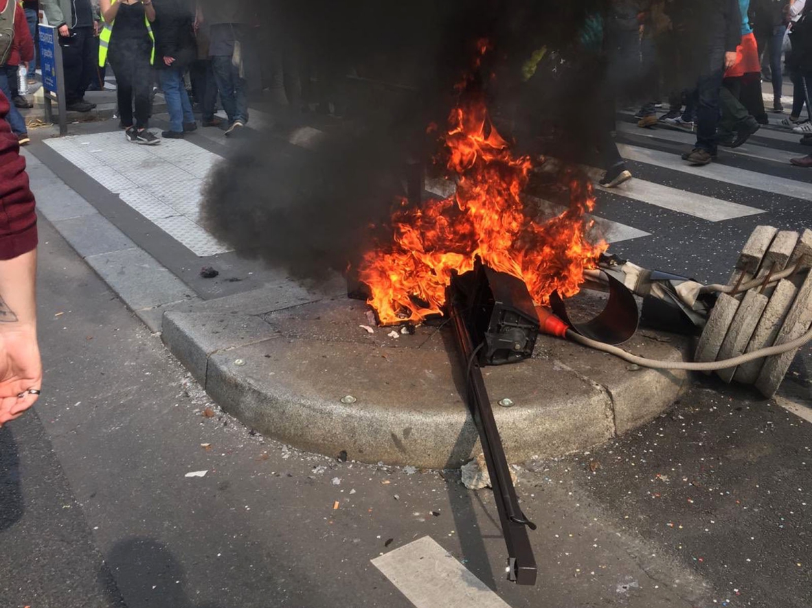À partir de novembre 2018, de graves évènements dits "manifestations gilets jaunes" ont secoué la France et particulièrement Paris. De très nombreuses dégradations ont été commises par les manifestants, particulièrement sur le mobiler urbain. De nombreuses installations de signalisation lumineuse tricolore, parfois confondues par les manifestants avec des installations de vidéosurveillance, ont été saccagées ou incendiées : mâts renversés, feux vandalisés, armoires incendiées... Les installations les plus touchées ont été les feux du terre-plein central de l'avenue des Champs-Élysées montés sur des socles amovibles.