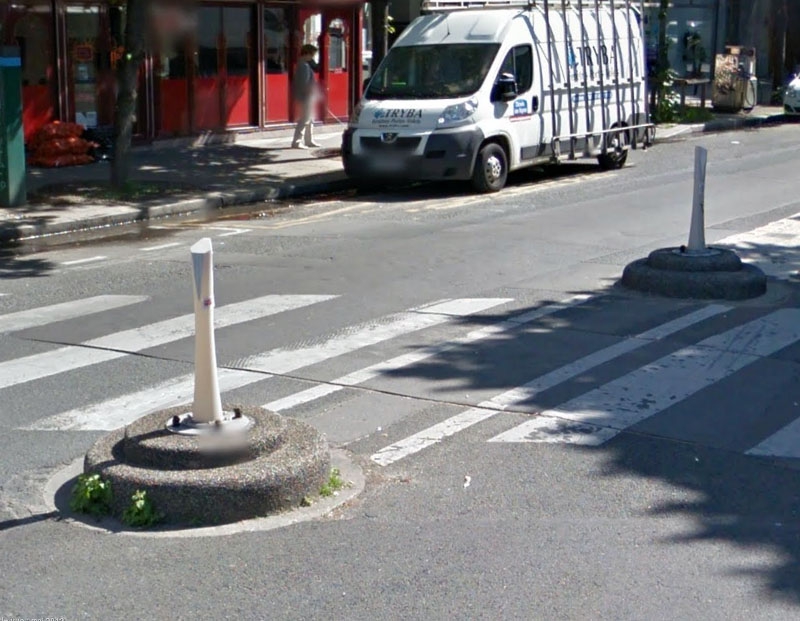 Depuis les années 1960, la ville de Paris a très largement équipé ses refuges piétons de bornes lumineuses ou de potelets tricolores (type potelet Mazas ou potelet carré) montés sur une couronne de béton de 1,20 m de diamètre appelée socle Devaux. Mais en 1991, la réglementation européenne évolue et impose désormais un diamètre minimum de 1,50 m pour ces socles, soit 30 cm de plus que les socles Devaux. Au total, ce sont près de 2200 carrefours qui se retrouvent non-conformes.