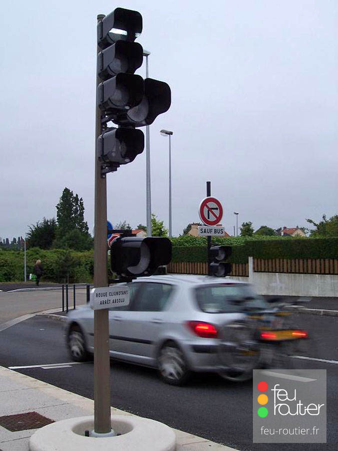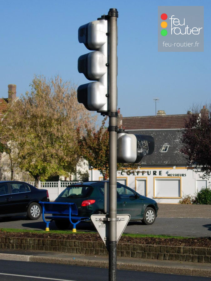 Avant l'apparition des croix grecques, deux feux tricolores étaient implantés dos à dos. Ce type d'installation est interdit depuis 1991.