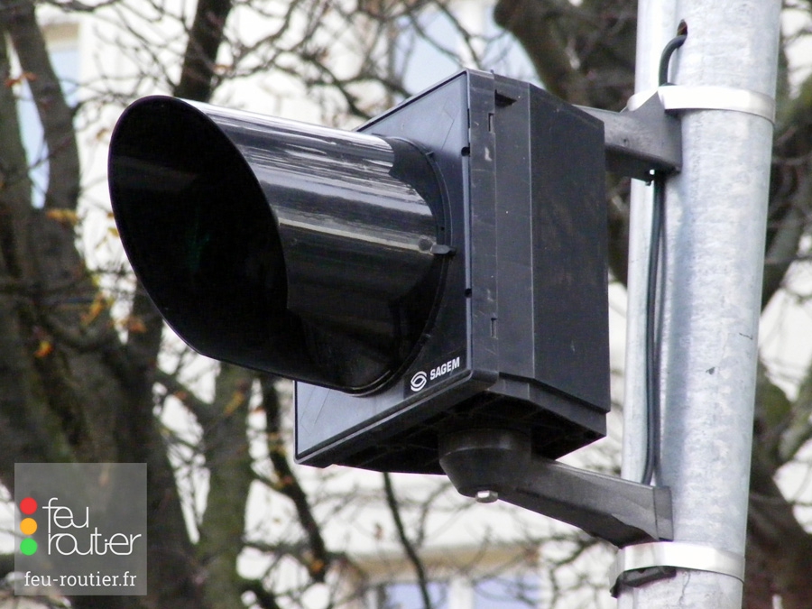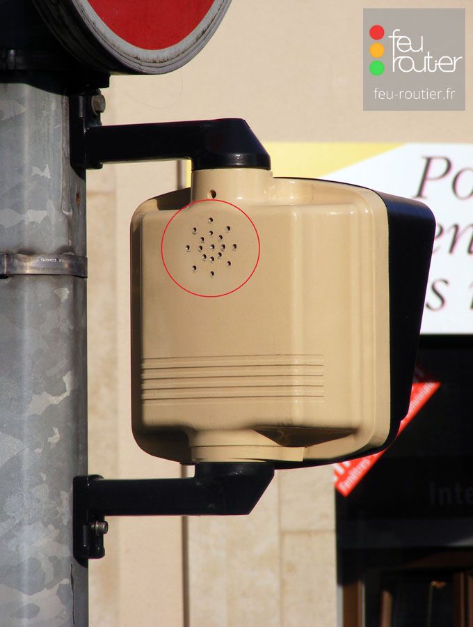 Haut-parleur intégré aux feux piétons, ou placé à proximité.