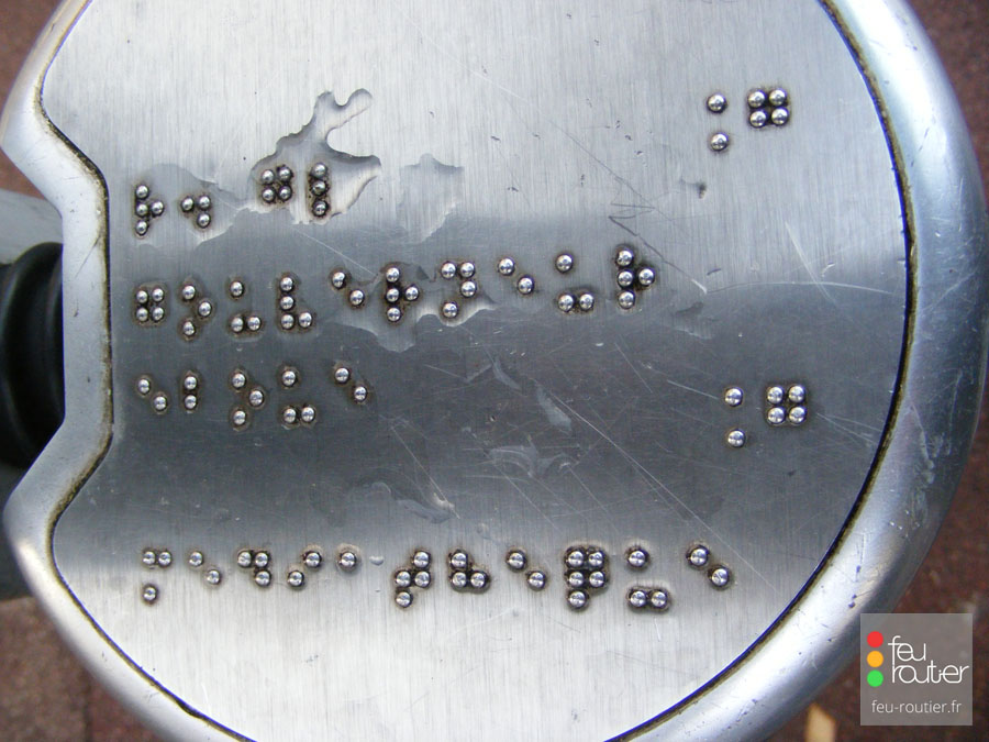 Lorsque le signal piétons est vert, le boitier vibre. La personne malvoyante ressent la vibration en posant la main sur le boitier et sait alors qu'elle peut traverser en toute sécurité. Un message en braille indiquant le nom de la rue et les bâtiments importants se situant à proximité est également présent sur le dessus du boitier. Afin de limiter les effets de la vibration sur le support du feu, le boitier vibrant est isolé au moyen de silent blocks.