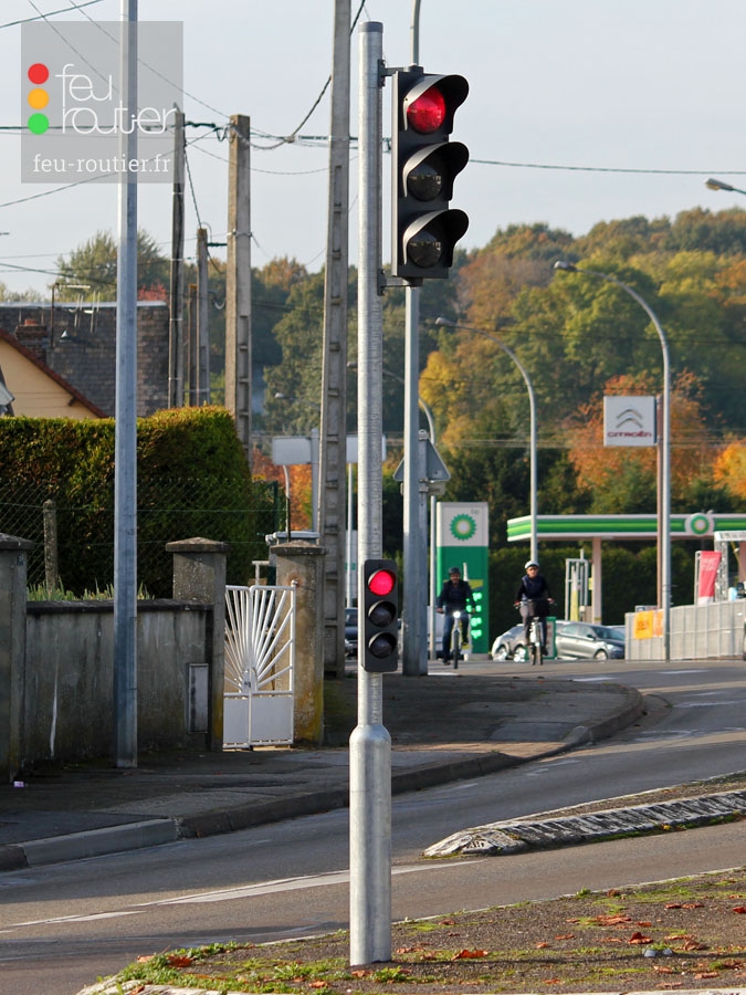 Il comporte un feu tricolore implanté environ 3 mètres au dessus du sol, ainsi qu'un autre feu (généralement Ø333) implanté beaucoup plus haut afin d'être vu du plus grand nombre. Il est utilisé sur une voie en ligne droite, lorsqu'une potence ne peut pas être implantée, notamment en raison de passages de convois exceptionnels de grande hauteur.