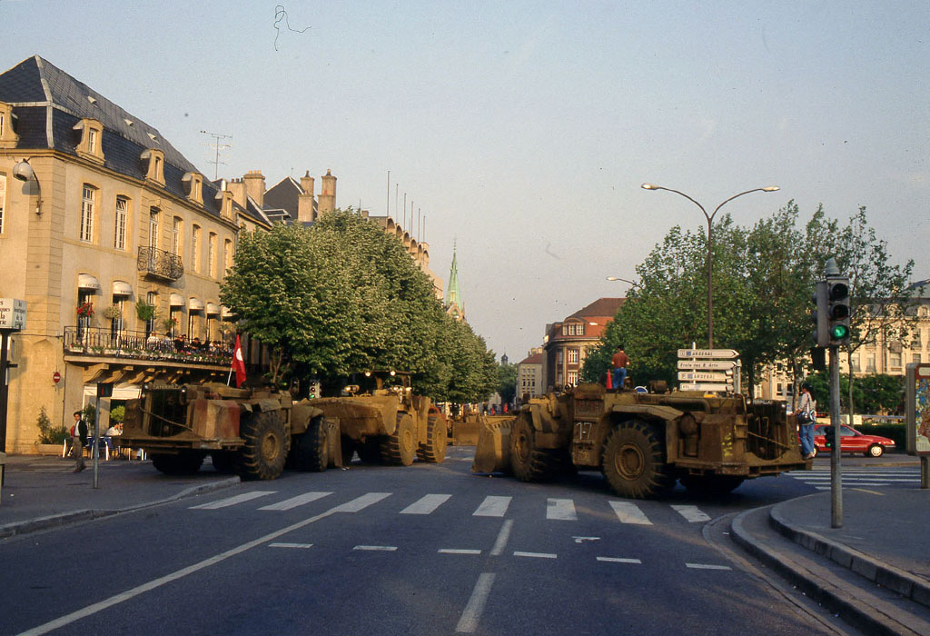 Ce carrefour central de la ville de Metz a été le premier a être équipé de signaux lumineux de circulation dans les années 1950. Il s'agissait d'un mât à base lumineuse placé au centre du carrefour avec 4 feux EVR. De plus petits feux de type répétiteurs Ville de Paris, étaient placés plus en aval du carrefour en tant que signaux pour piétons. Cette configuration a été conservée jusque dans les années 1970, où ce carrefour a été réaménagé dans une configuration plus classique, mais toujours avec des feux EVR Classique Aluminium.