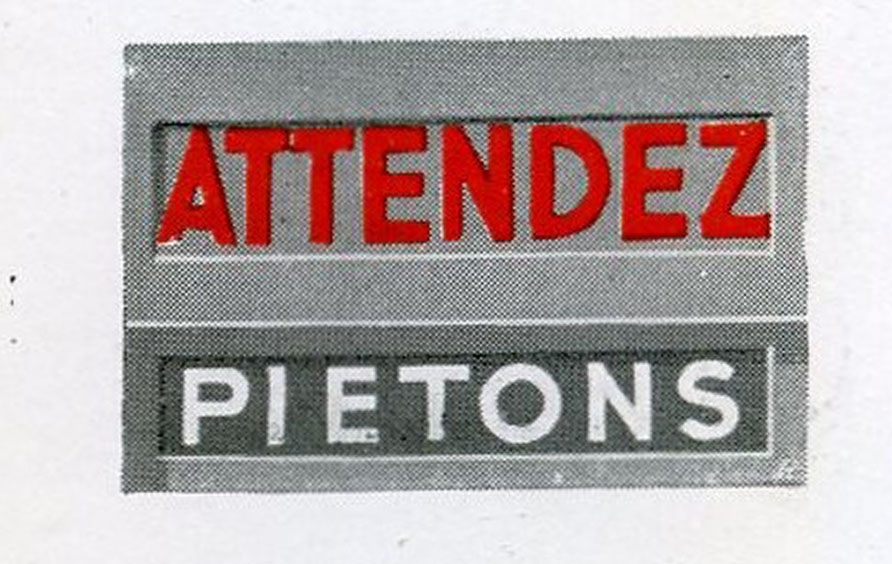Un signal piétons portant les inscriptions ATTENDEZ et PASSEZ, ainsi que l'inscription PIETONS lumineuse en permanence sur fond bleu, a également été commercialisé avec cette série de signaux.