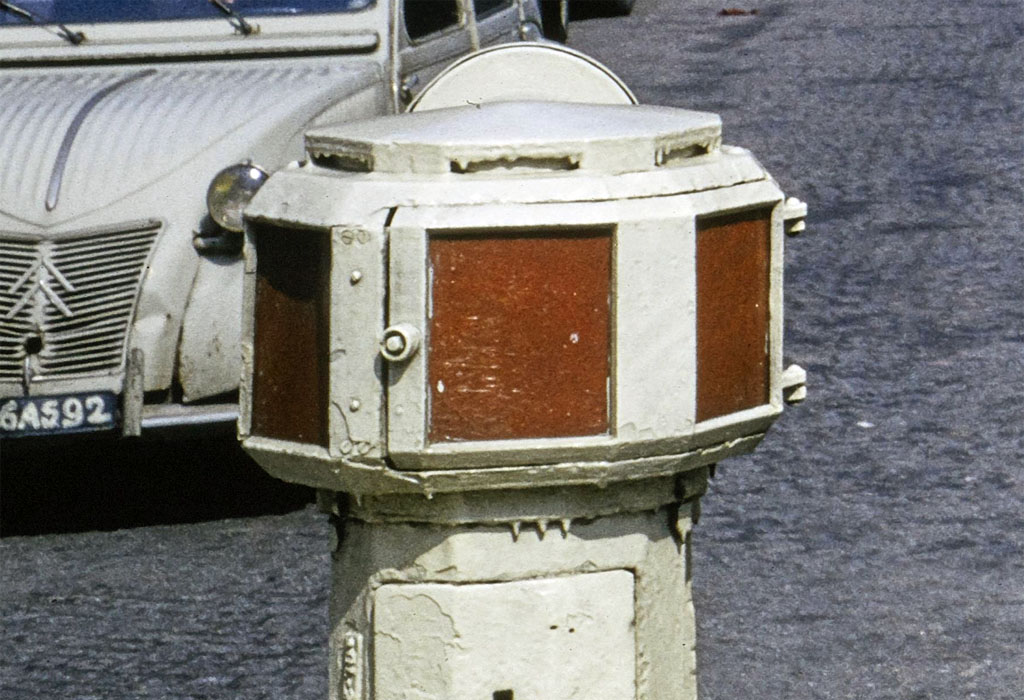 Parallèlement à ses signaux lumineux tricolores et unicolores, Saunier Duval Frisquet a également conçu et commercalisé les bornes de refuge installées sur nez d'ilôt en milieu de chaussée afin de signaler la présence d'un passage clouté, et ainsi offrir un refuge aux piétons qui traversaient les grandes artères parisiennes.