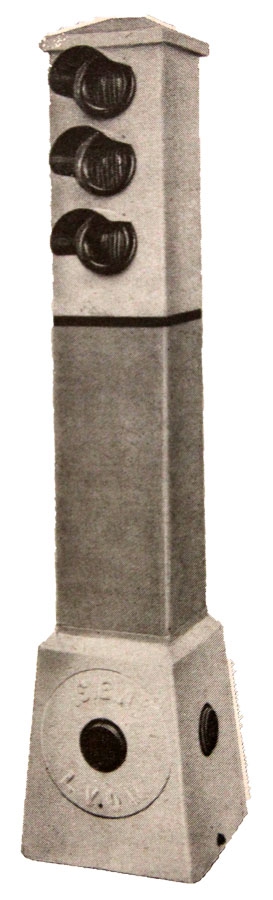 • Borne lumineuse mi-haute de trottoir, conçue en fonte, avec voyant lumineux.