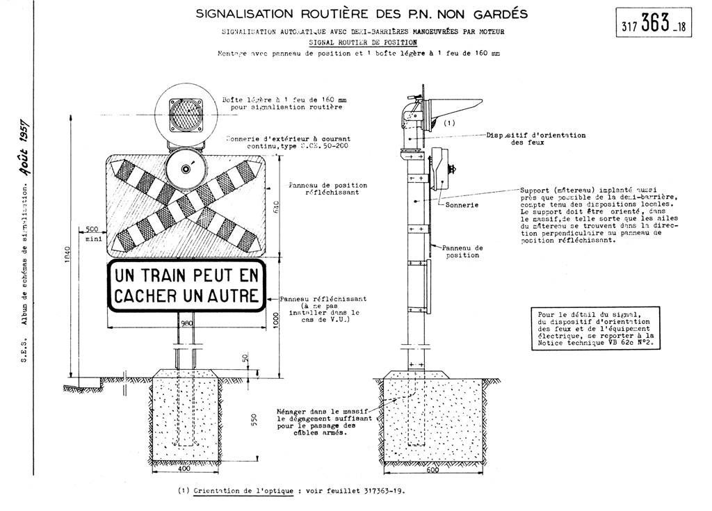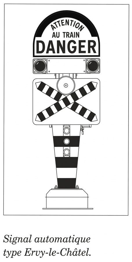 À partir de 1955, le signal automatique de 1947 sera progressivement abandonné pour une nouvelle configuration avec des demi-barrières automatiques placées de part et d'autre du passage à niveau. Ces demi-barrières sont complétées d'un signal de position avec un feu rouge clignotant, une sonnerie, un panneau émaillé avec une croix de Saint André, et un panonceau portant la mention UN TRAIN PEUT EN CACHER UN AUTRE. C'est toujours cette configuration qui est utilisée aujourd'hui.