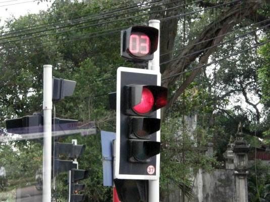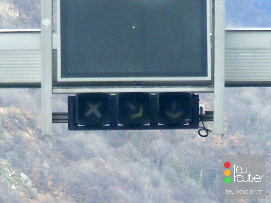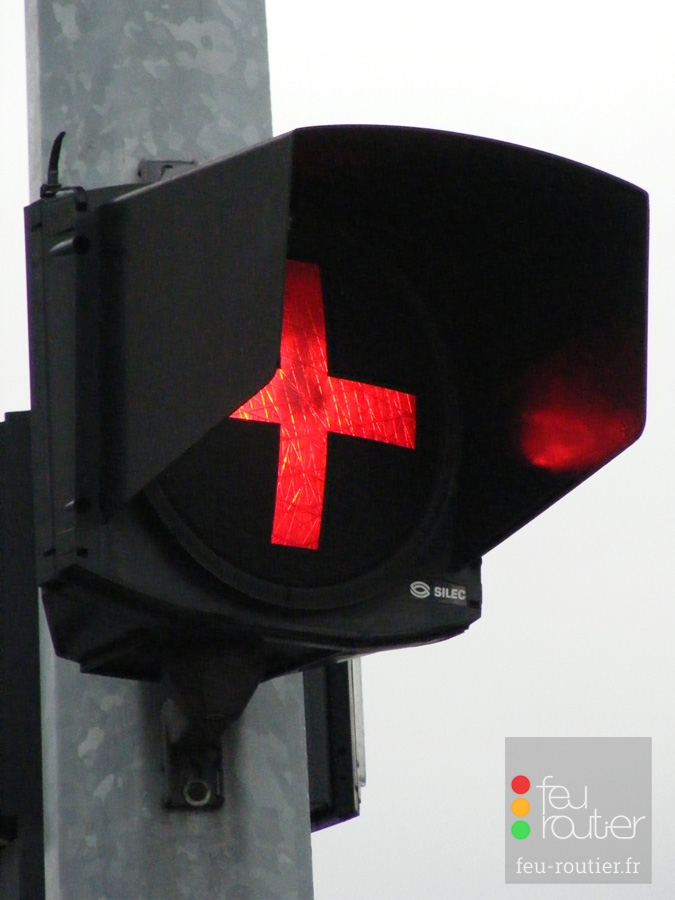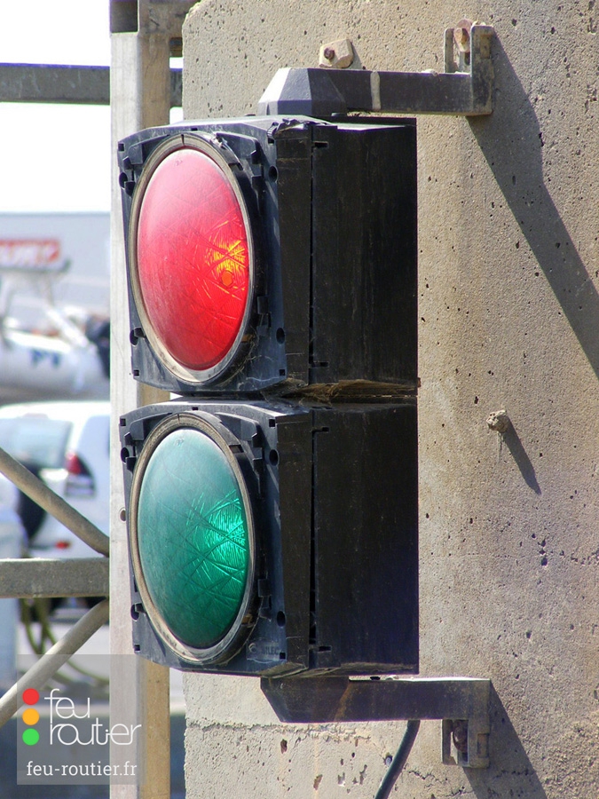feux implantés sur les gares de péage comprenant un feu bicolore ou tricolore et une sirène de violation de passage qui s'active lorsqu'un véhicule force la barrière de péage |