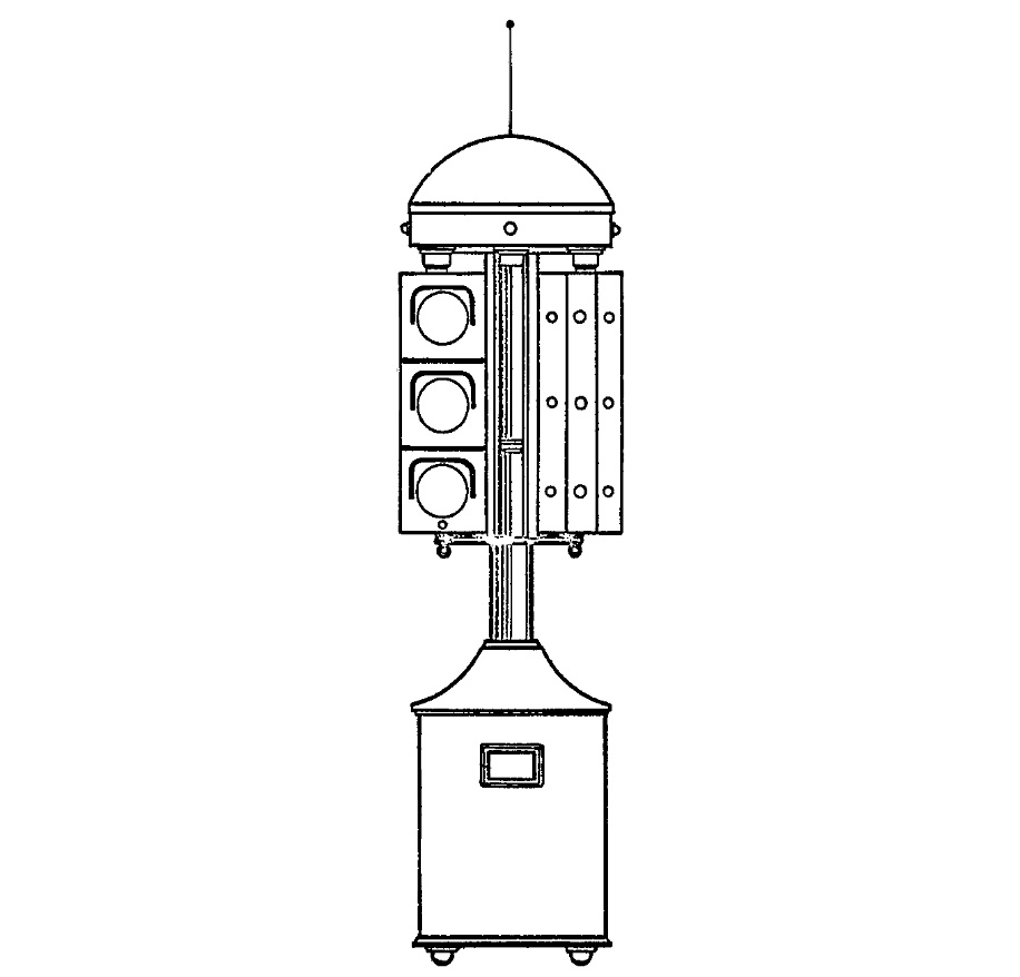 Ce feu a été breveté en 1965. Il s'agit d'un dispositif auxiliaire monté sur un support mobile à roues à mât télescopique permettant de créer un carrefour à feu temporaire, pour des besoins ponctuels.