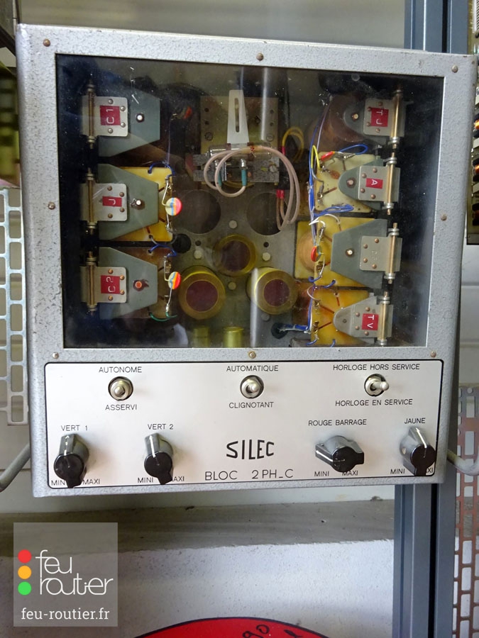 Il était installé dans une imposante armoire à deux faces : la chaîne de comptage à relais et ses voyants sur la face avant, et les relais de puissance sur la face arrière.