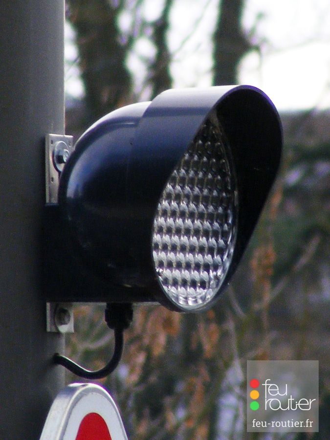 Ce feu se compose d'un corps en matière plastique ABS moulé, d'une lentille à double loupe entrelacée et d'une optique à 80 LED jaunes. Sa fixation s'effectue par une platine située à l'arrière.
