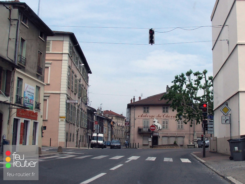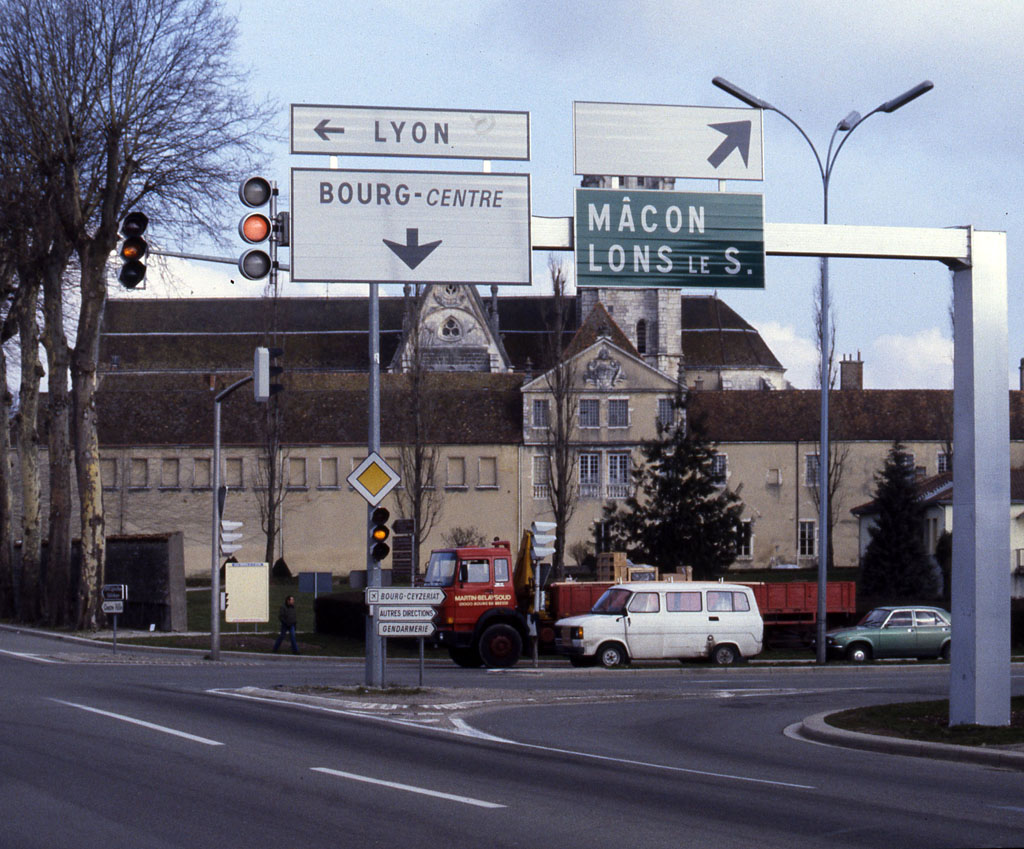 Les premiers carrefours équipés de feux tricolores à Bourg-en-Bresse l'ont été avec des signaux du fabricant lyonnais S.E.A. Deloge, modèle DFC. Ces signaux ont persisté jusque dans les années 1970, où une autre gamme de feux de ce même fabricant a été largement implantée. Mais Bourg-en-Bresse a également été équipée à partir du milieu des années 1970 de signaux du fabricant clermontois Otic Fischer & Porter : gammes Octogonal 2000 et Prestige 2000.