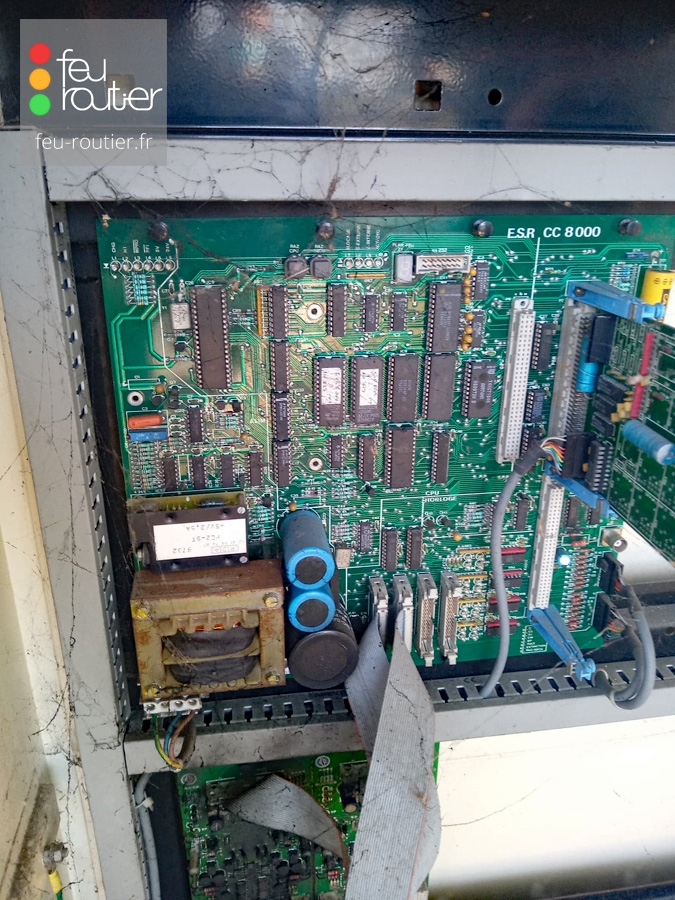 Le contrôleur de carrefour CC 8000 en configuration basique permet la gestion de 8 phases (voitures ou piétons). Il a été mis en commercialisation à partir du milieu des années 1990.