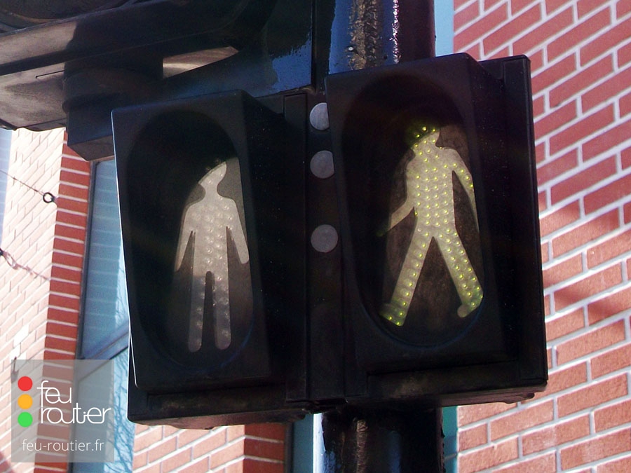 Le signal piétons peut être de conception horizontale ou verticale, en version fixe ou orientable sur une console. Des haut-parleurs pour la diffusion de messages sonores destinés aux malvoyants peuvent y être ajoutés.