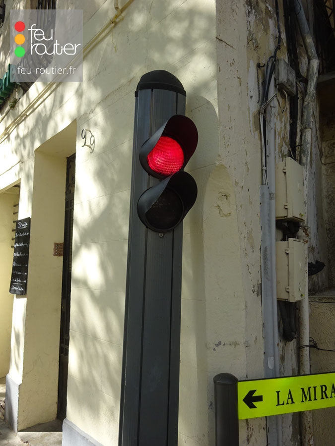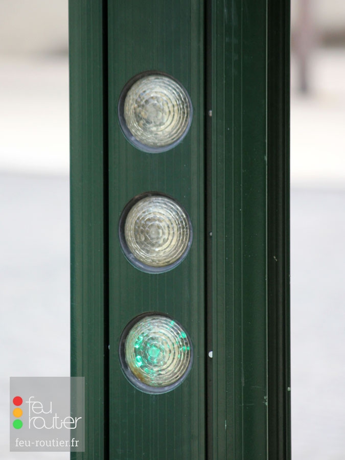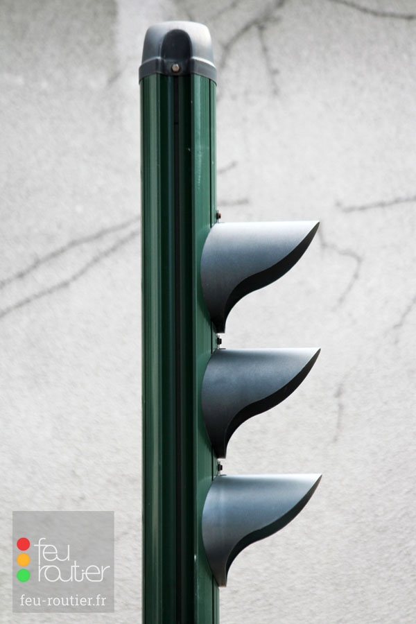Le profilé est en aluminium anodisé de forme ovale. Conformément à la réglementation en vigueur, les mâts de couleur claire sont systématiquement de couleur sombre à hauteur du signal tricolore.