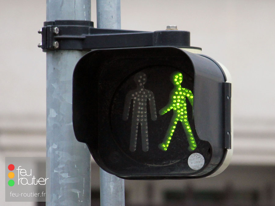 Les pictogrammes piétons et flèches, ainsi que les fixations des caissons ont évolué plusieurs fois au cours du temps. Les caissons étaient de couleur chamoix havane, ou noirs pour les derniers produits dans les années 2000.