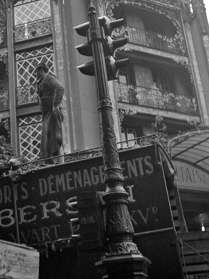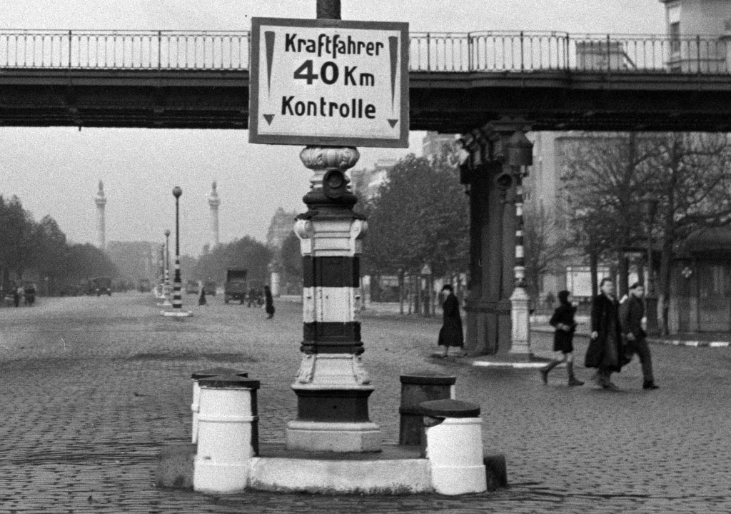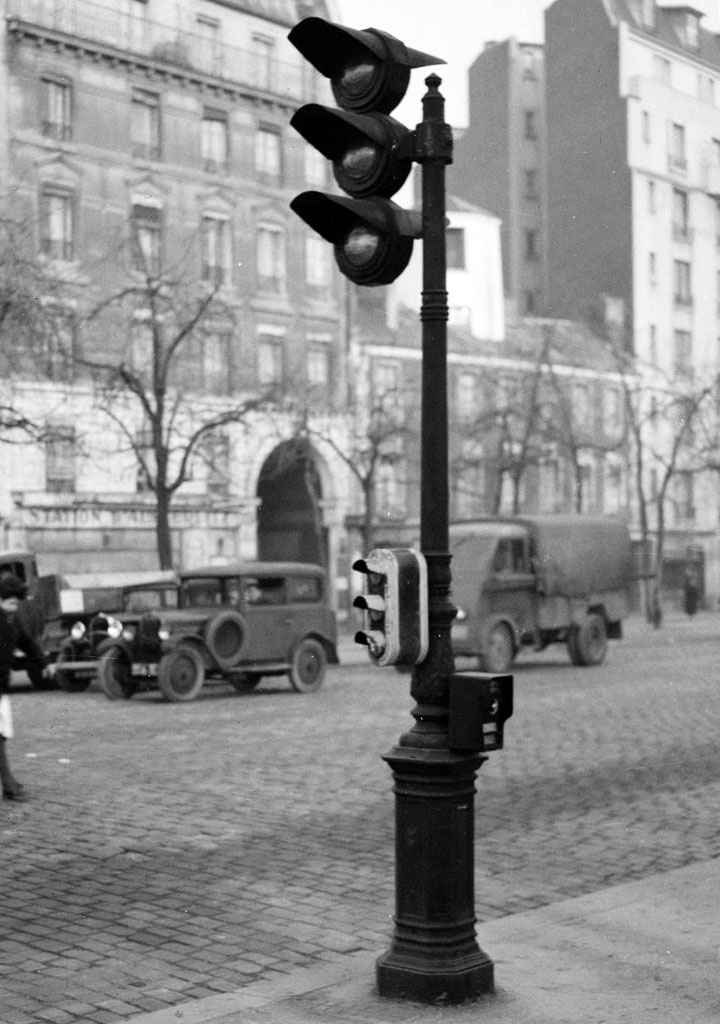 La majorité des feux de signalisation en place à Paris ont été plongés dans le noir par les allemands, par soucis de sécurité lors des couvre-feux. Leur emploi était de toute façon superflu face à la diminution du trafic automobile, et notamment en 1941 lors de la pénurie d'essence. Les feux éteints sont pour la plupart restés en place. En l'absence d'éclairage public, de nombreux mâts ont été peints avec des rayures blanches afin de les rendre plus visibles. Les allemands ont également retiré toutes les bornes de refuge.