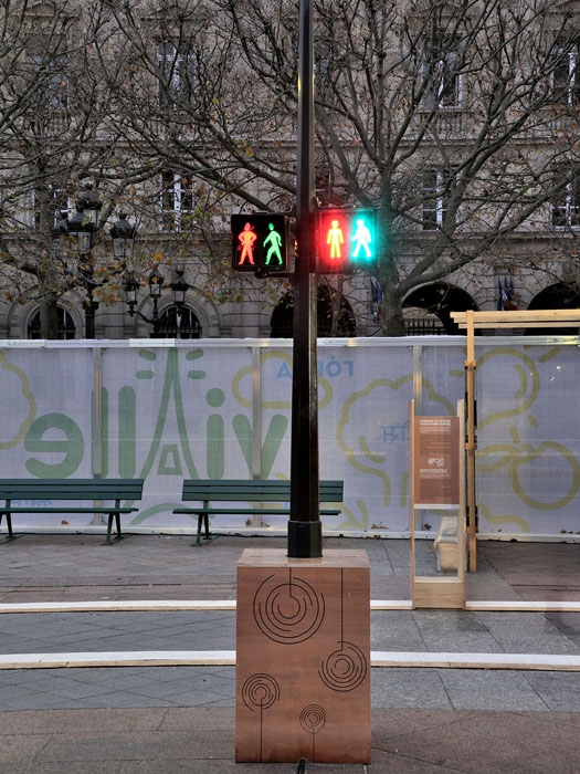 Si la signalisation lumineuse tricolore et l'éclairage public ont été les premiers concernés par l'objectif de réduction de 30% de la consommation électrique de ces installations, les bornes lumineuses de refuge pour piétons sont également concernées. Chacune d'entre elle est équipée d'un tube fluorescent, et il y en a 2700 dans toute la capitale.