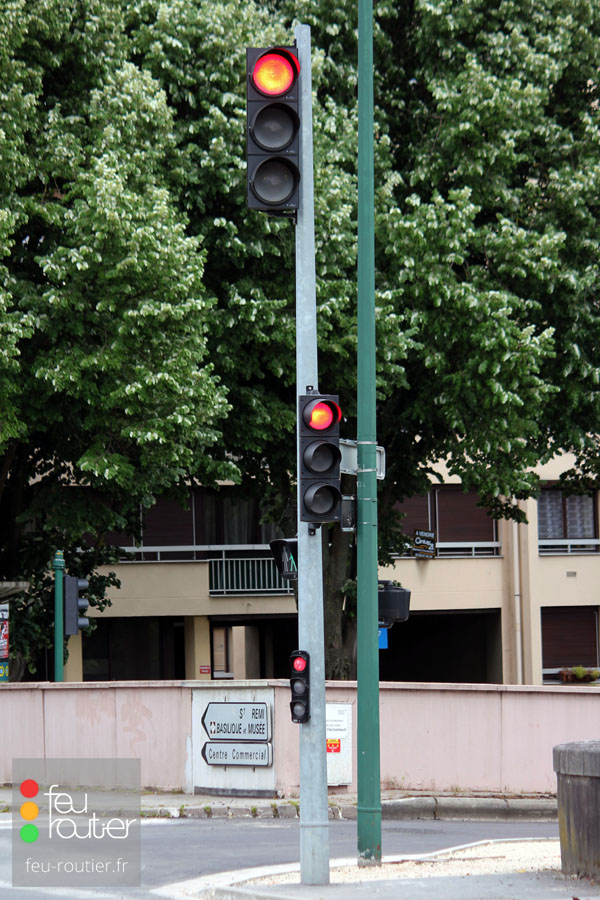 Il comporte un feu tricolore implanté environ 3 mètres au dessus du sol, ainsi qu'un autre feu (généralement Ø333) implanté beaucoup plus haut afin d'être vu du plus grand nombre. Il est utilisé sur une voie en ligne droite, lorsqu'une potence ne peut pas être implantée, notamment en raison de passages de convois exceptionnels de grande hauteur.