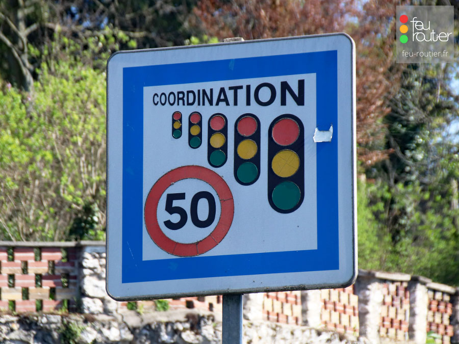 Synchronisation des cycles de plusieurs carrefours à feux successifs le long d’un axe routier dans l'objectif de permettre à un peloton de véhicules circulant à une vitesse recommandée de traverser une série d'intersections sans avoir à s'arrêter au feu rouge. Egalement appelé onde verte.