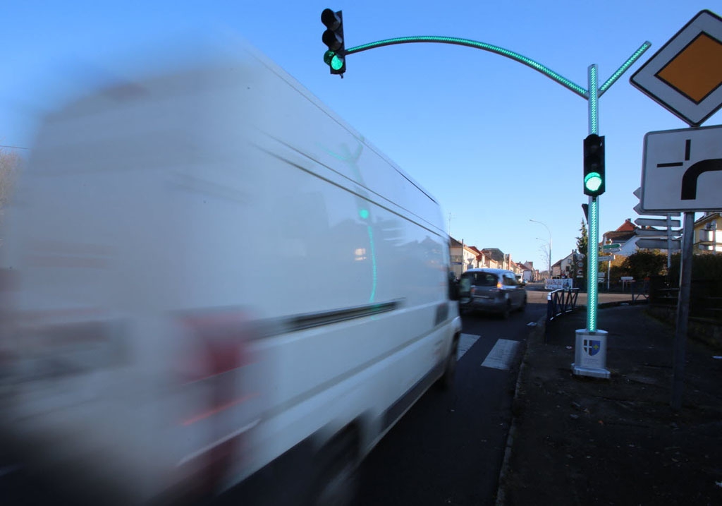 Mât lumineux du fabricant turc Ekaldes. Deux potences et deux mâts simples ont été installés à Phalsbourg en 2017, après une visite du maire de cette commune de Moselle en Turquie. Les mâts s'allument de la même couleur que les feux. Ces installations ne sont pas réglementaires.