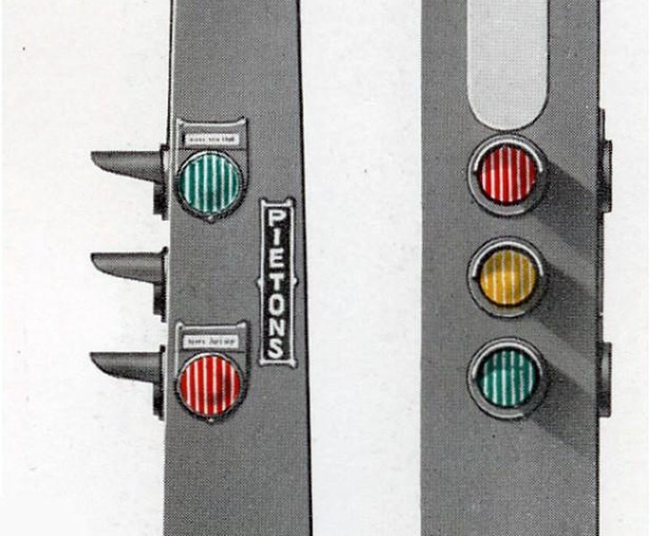 Un signal piétons portant les inscriptions ATTENDEZ et PASSEZ, ainsi que l'inscription PIETONS lumineuse en permanence sur fond bleu, a également été commercialisé avec cette série de signaux.
