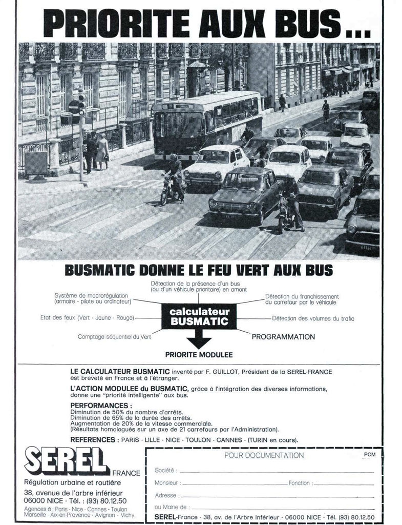 La Société d'Études et de Réalisations Électrotechniques et électroniques (SEREL) a été fondée en 1967 à Nice. Cette société était très active en matière de régulation du trafic : contrôleurs de carrefours, systèmes centralisés, systèmes de priorité pour transports en commun, systèmes de détection par boucles magnétiques.