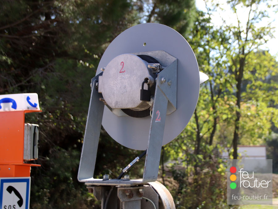 La principale nouveauté de ce signal est le panneau dépliable placé à son sommet, qui est replié sur lui-même en position fermée, et qui s'ouvre pour laisser apparaitre le message lorsqu'un train est détecté, en complément du feu rouge clignotant et du déclenchement de la sonnerie.
