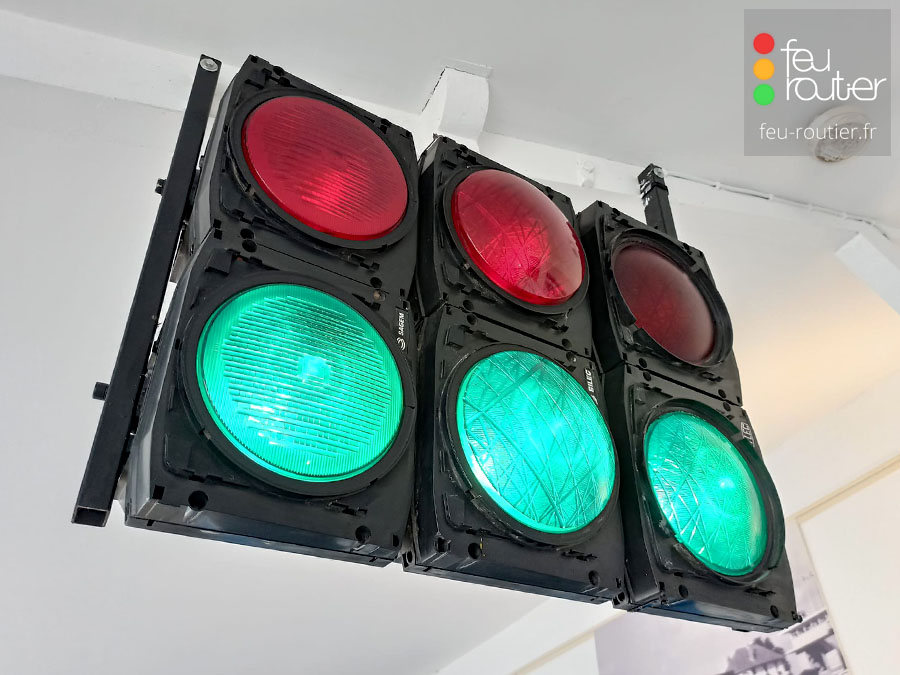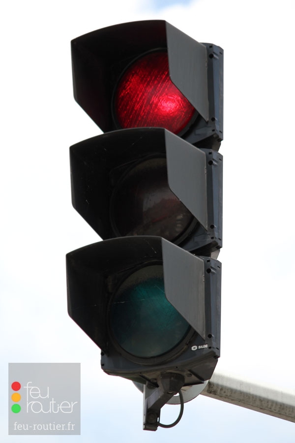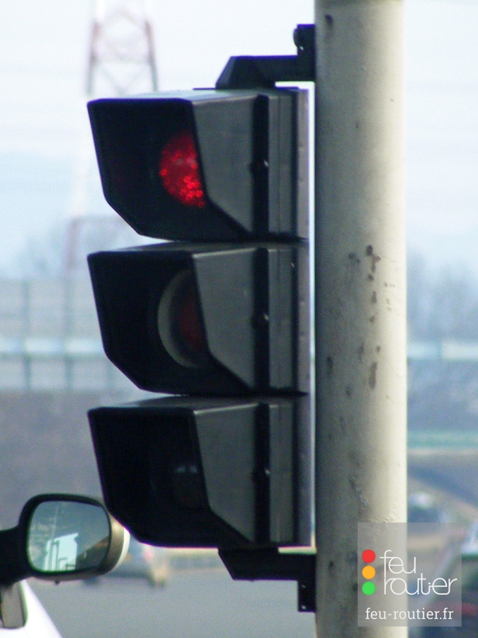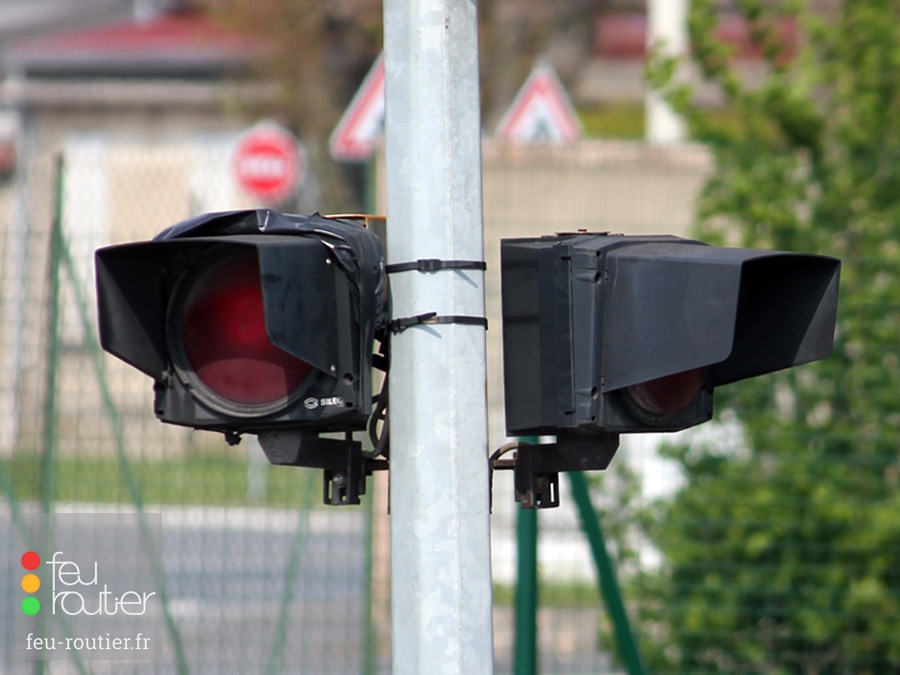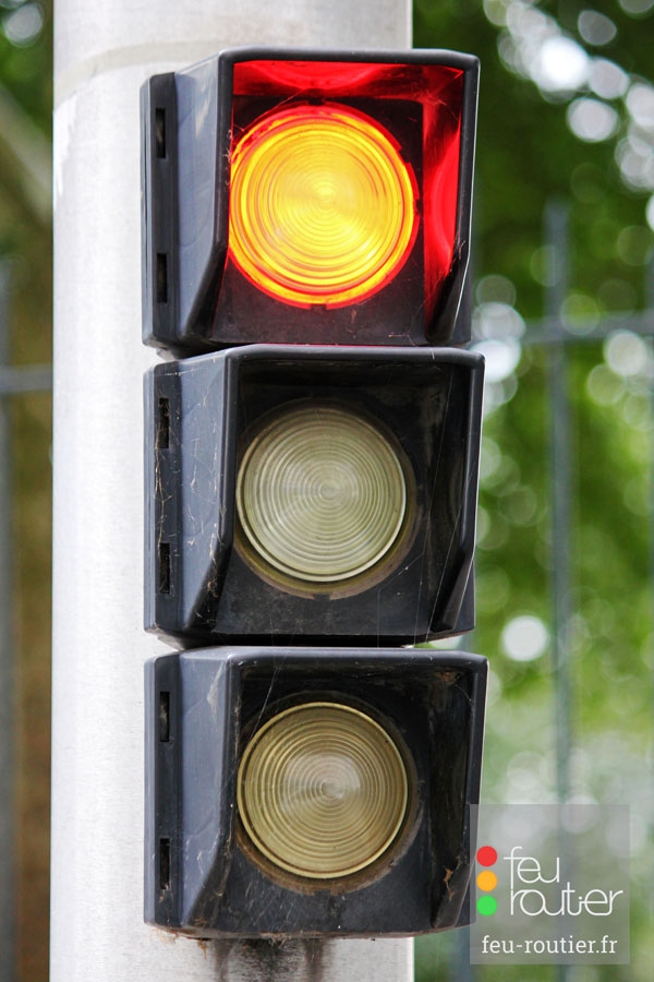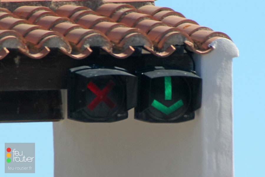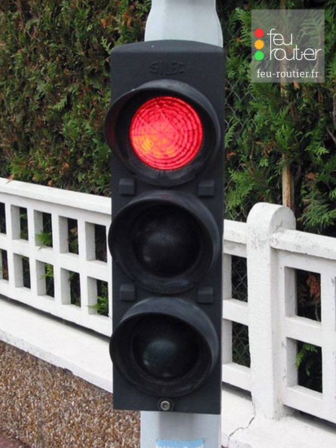 feux implantés sur les gares de péage comprenant un feu bicolore ou tricolore et une sirène de violation de passage qui s'active lorsqu'un véhicule force la barrière de péage |