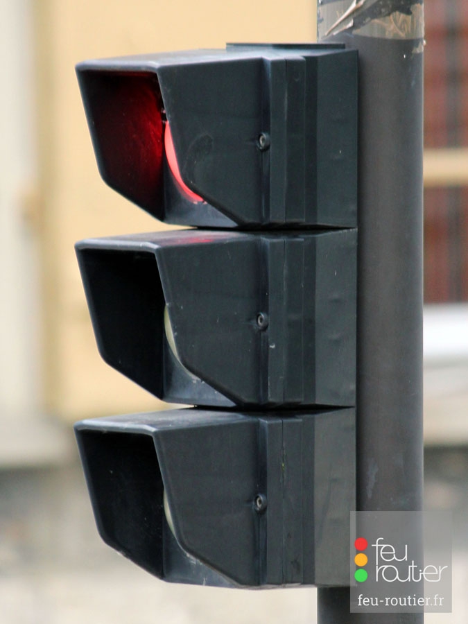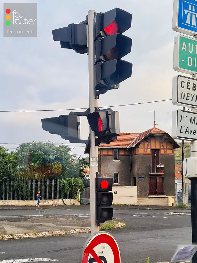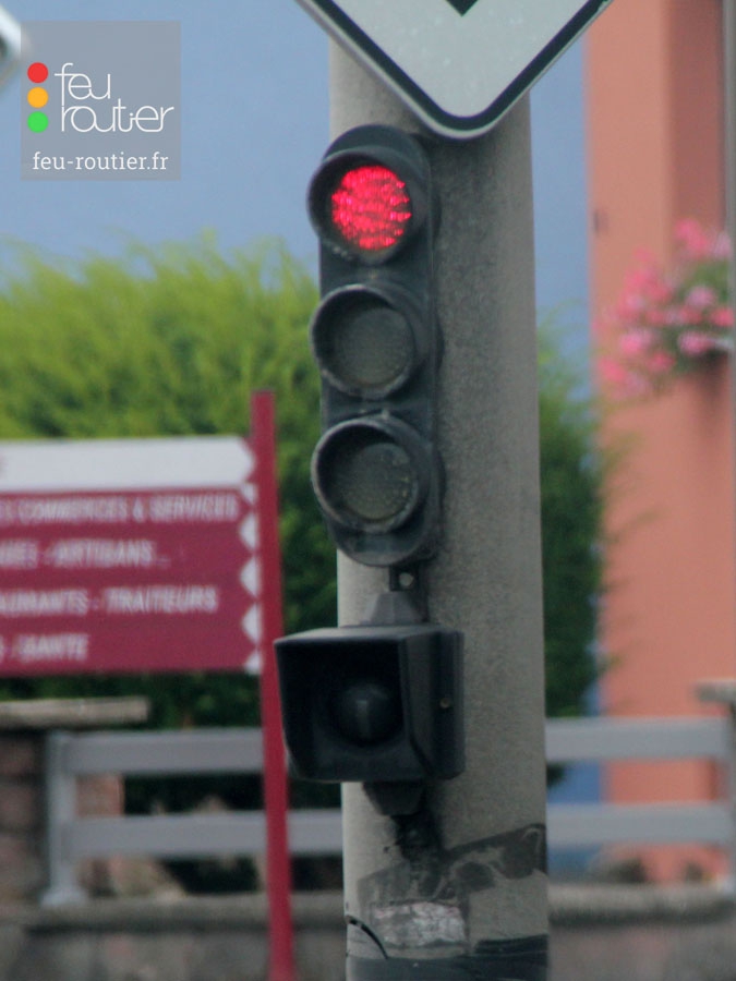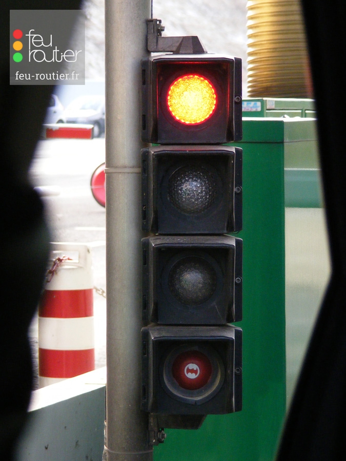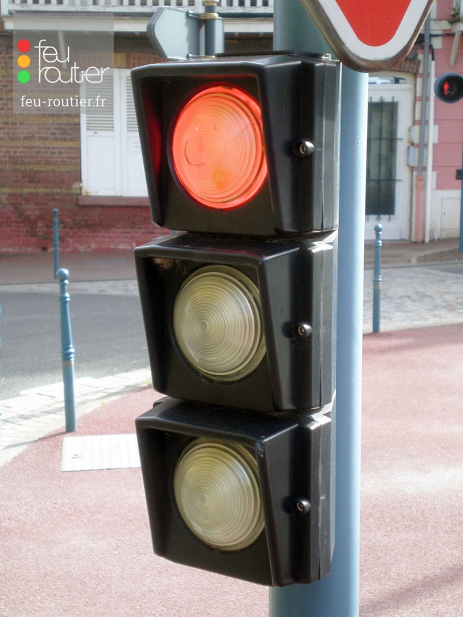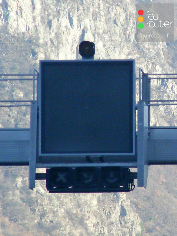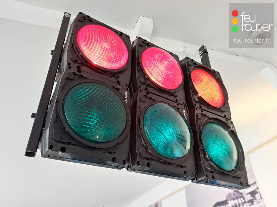 feux implantés sur les gares de péage comprenant un feu bicolore ou tricolore et une sirène de violation de passage qui s'active lorsqu'un véhicule force la barrière de péage |