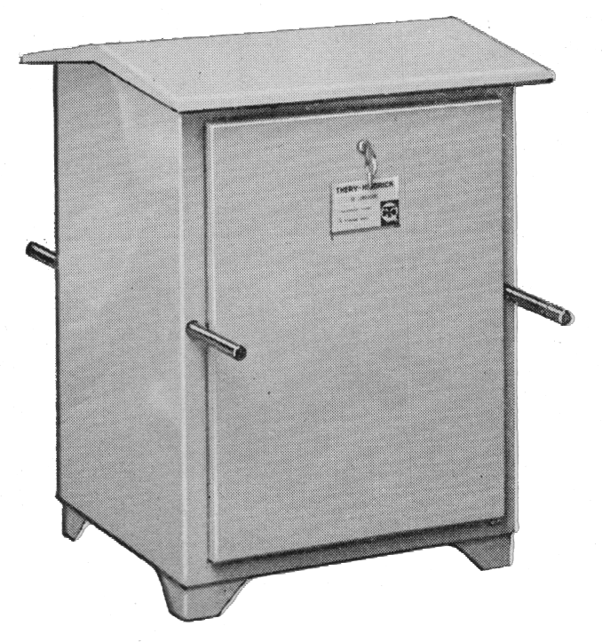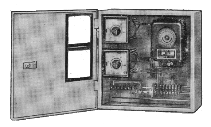 Contrôleur électromécanique des années 1960 conçu par Théry Hindrick pour des feux d'alternat temporaire bicolores ou tricolores. Il se compose d'un combinateur à cames associé à des minuteries débrochables Crouzet. Le réglage des temps se fait par des boutons gradués en secondes. Il est conçu pour une alimentation par câble sur secteur, ou sur batterie 24V, et monté dans une armoire transportable.