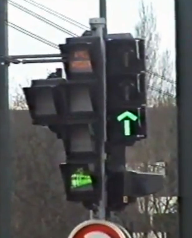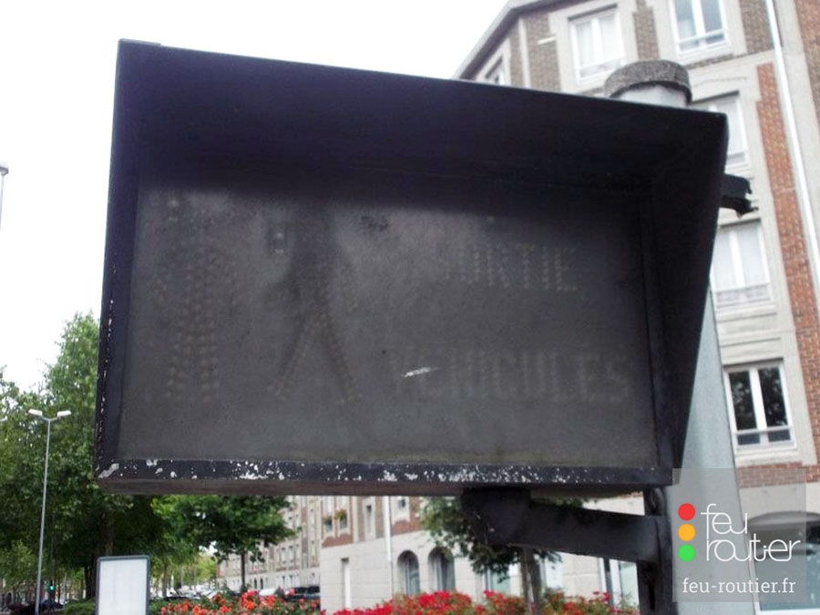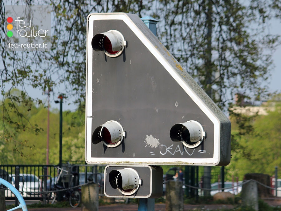Application spéciale pour le tramway de la communauté urbaine de Lille : signal composé d'un ensemble de 4 caissons polycarbonate type Futurit Standard à tubes fluorescents. Premier caisson mention "appel enregistré", et caissons rouge, jaune, vert avec pictogramme tramway. Ces feux ont été remplacés par les feux tram R17 lorsqu'ils ont été normalisés.