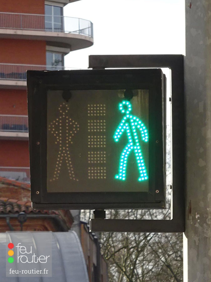 Il se compose d'un pictogramme piéton rouge et d'un autre vert séparés par plusieurs rectangles jaunes clignotants qui s'activent lorsqu'un piétons est détecté à proximité du passage. Il est associé au signal tricolore PPS décrit ci-dessus. Ce signal n'est plus commercialisé par T.T.S., depuis 2015, les signaux PPS de Toulouse sont conçus par Lacroix Traffic.